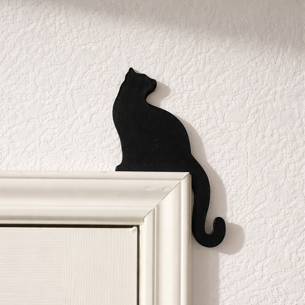 Schwarze Katzensilhouette auf dem Türrahmen